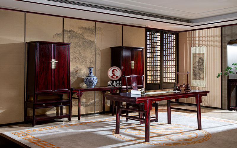 对于书房的布局,您可以从休闲、阅览、收藏等多方面考虑,将多种功能归纳到同一空间。《国寿制器书房系列》在设计时祛除了繁复的雕琢装饰,将优雅低调刻画入骨,体现着居者自我修养和文化的沉淀。家具品质稳重的美感,也形成了书房空间内成熟自在的气质。