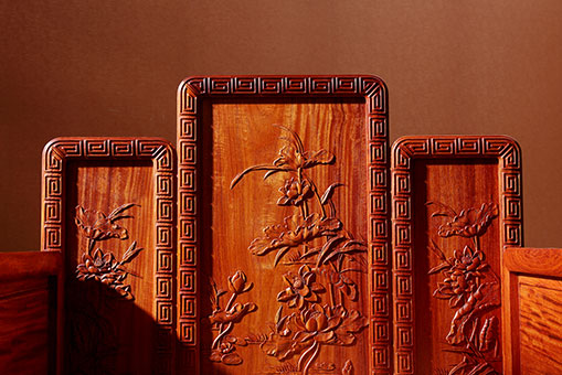 座椅围板雕饰荷花纹